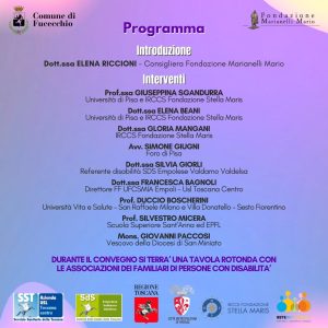 Durante il convegno si terrà una tavola rotonda con le associazioni dei familiari di persone con disabilità, insieme alla Rete Inclusione Empolese Valdarno Valdelsa.