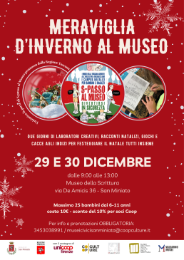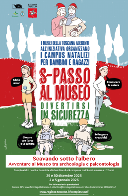 Nelle settimane dal 24 dicembre 2025 al 6 gennaio 2026 ritorna l’iniziativa “S-Passo al Museo, Campi natalizi” nei musei aderenti della Toscana. I musei della Toscana aprono le porte a bambini e ragazzi che vogliono divertirsi in maniera diversa: educatori museali qualificati hanno creato appositamente progetti che includono laboratori ludico-didattici, attività di gruppo, di scoperta dei territori e riscoperta delle tradizioni.