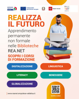La Rete REA.net – Biblioteche lungo l’Elsa e l’Arno promuove il progetto “REAlizza il futuro – Apprendimento permanente nelle biblioteche REA.net”, iniziativa dedicata alla promozione dell’educazione permanente dei cittadini maggiorenni e adulti residenti nel territorio della rete.